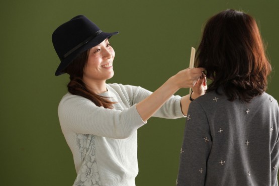 パサつきをできるだけ抑えたローレイヤーミディアムスタイル。内側に削ぎを入れることで表面のまとまり感は残しつつパーマで動きやすい軽さも表現。